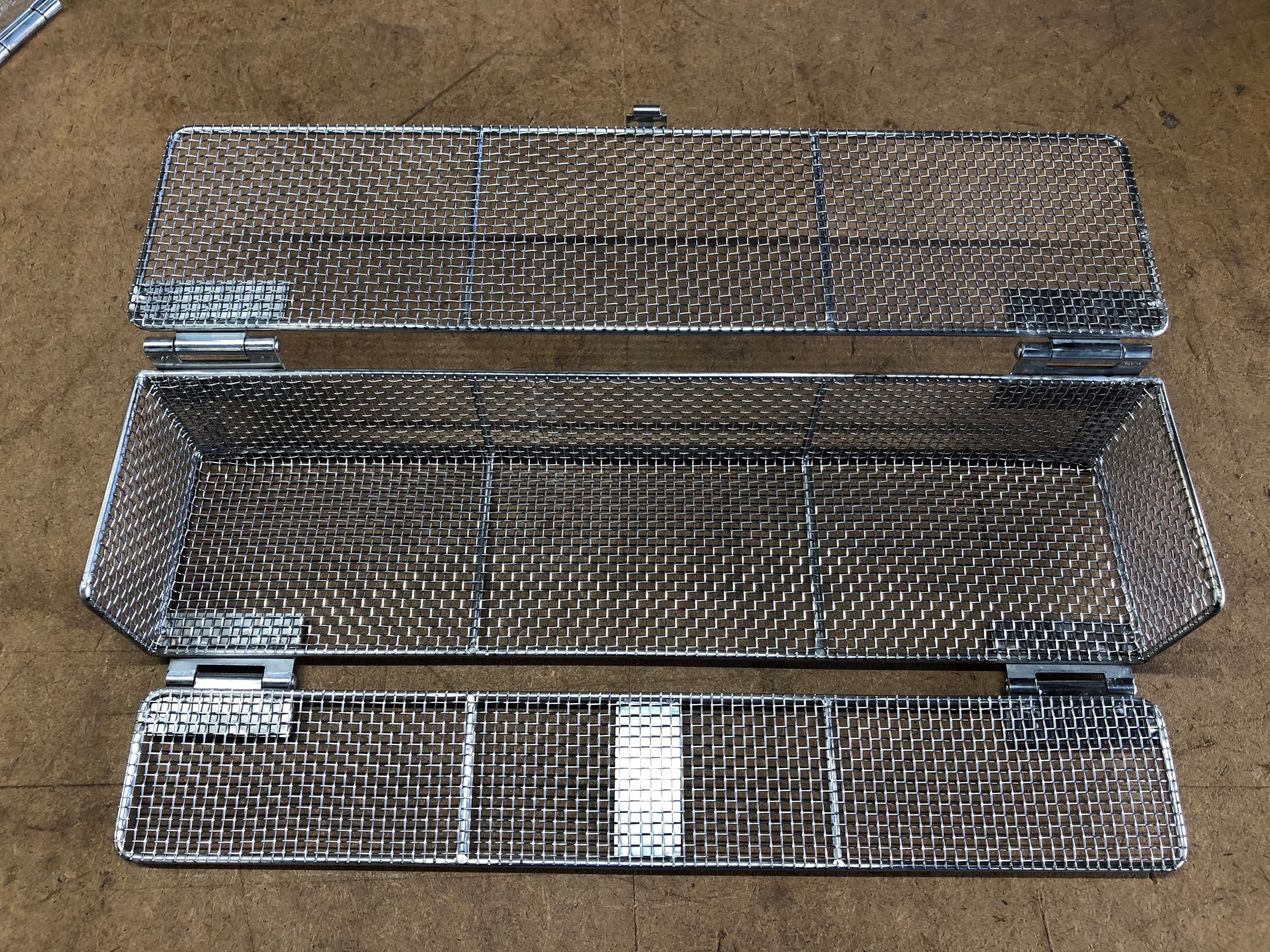 2021-01-19 洗浄カゴ 福島鈑金工業株式会社 【洗浄カゴ】 ガラス容器などの小物を洗浄するカゴです。 材料はステンレス網、丸棒、蝶番、パンチン錠を使用し開閉出来る構造となっております。 お客さまと打合せを行い図面のご承認をいただき製作しました。