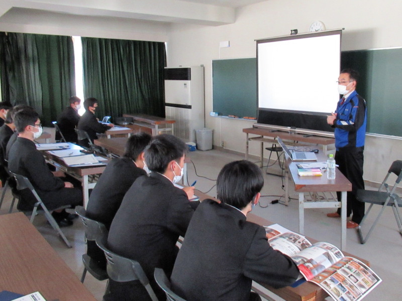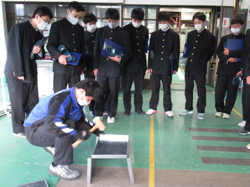 2021-12-01 高校生の工場見学受入 福島鈑金工業株式会社 11月11日(木)、福島県立福島工業高等学校機械科2年生35名が当社に工場見学に来社されました。 板金工場説明 鈑金工場は若手のホープ安齋社員が分かりやすく説明してくれました。 ダクト加工 ダクト加工については小林次長が現物を見せながら説明。 ダクト加工実演 ダクト加工の実演は、ダクト2級技能検定合格したばかりの熊倉社員が見せてくれました。 職業講話 最後に佐戸川から学校に戻り職業講話をさせていただきました。 モノづくりに関わりたいという若者が一人でも社会に出ることに期待しています。