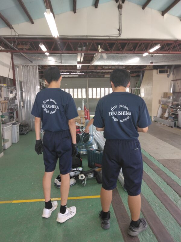 市内の中学生2名が職場体験にきています。