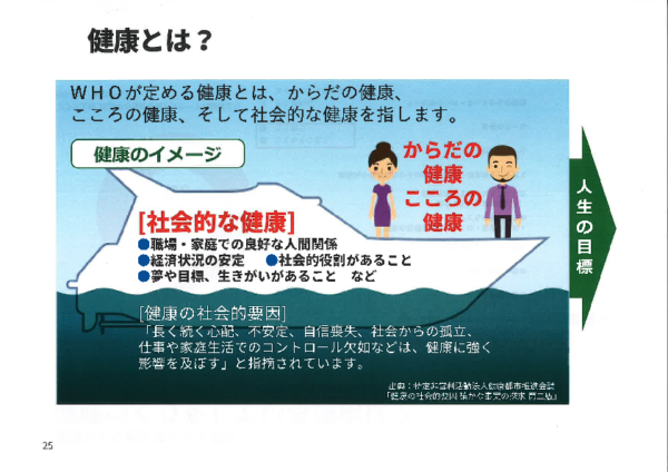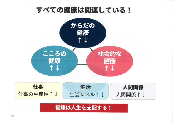 ひとりひとりが心豊かに生活していくことが健康経営の目的であるというお話でした。